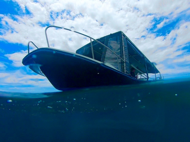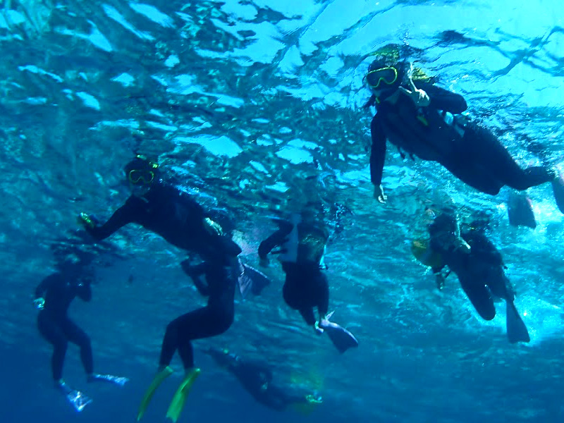 スムーズにエントリーできるように港でシュノーケル講習をしてから出航します!